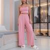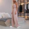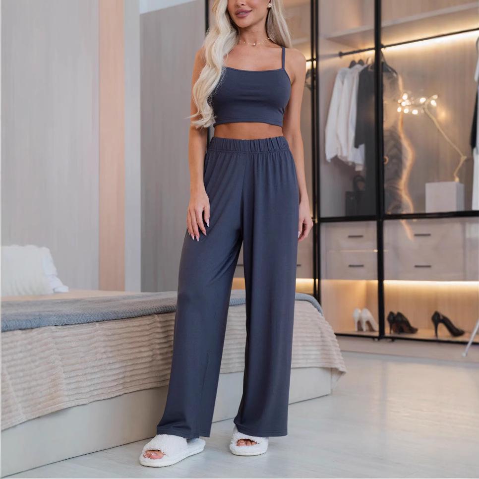 Elevate your loungewear with this casual two-piece homewear set, featuring a sleek knit sleeveless camisole and wide-leg pants. Crafted from soft and breathable viscose, the set offers a solid pattern with unique patchwork and quilted decorations for added style. The sportive design ensures comfort and ease, making it perfect for relaxing at home while maintaining a chic look.