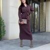 Elevate your fall wardrobe with this stylish set featuring a V-neck long-sleeve cardigan paired with a bodycon dress. Crafted from high-quality polyester, this ensemble offers both comfort and durability. With its solid pattern and flattering silhouette, it provides a chic and versatile look for any occasion. The long sleeves and V-neck design add an elegant touch, making it a perfect choice for cooler autumn days.
