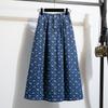 DIMANAF 2025 Plus Size Autumn Winter Women Long Skirts Elastic Waist Bottoms Oversize Print Floral Blue Denim