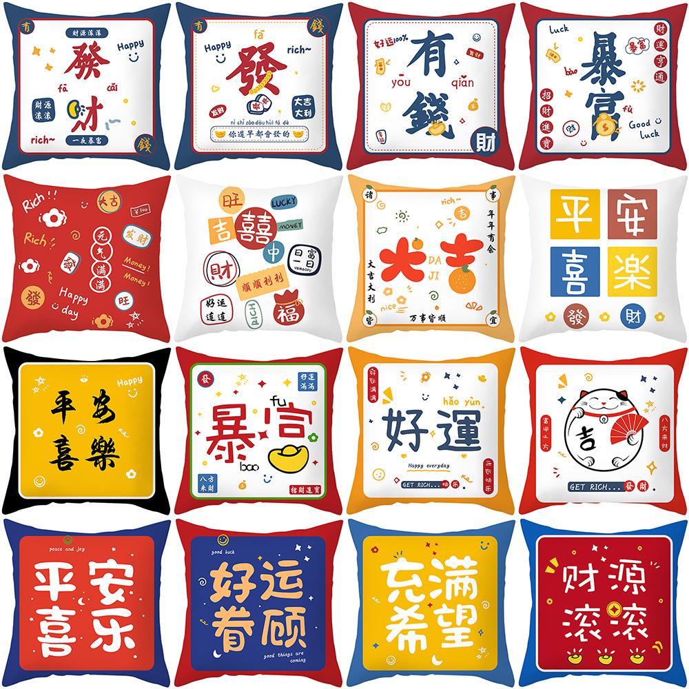 New Year Festive Festive Printed Pillow with Auspicious Words and Wealth Rolling Pillow Case for Home Living Room Sofa Pillow Case