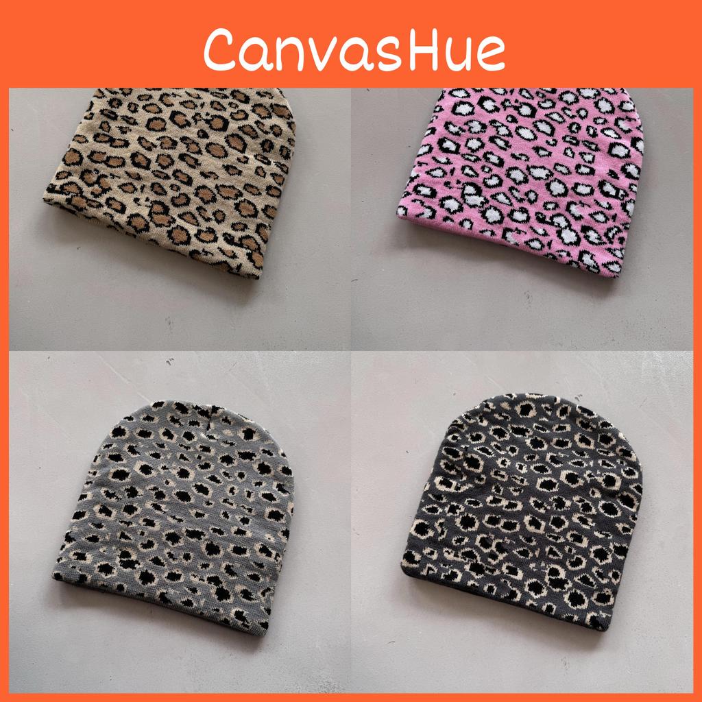 Leopard Pattern Knit Beanie Hat Fashion Warmth Cap For Casual Style Street