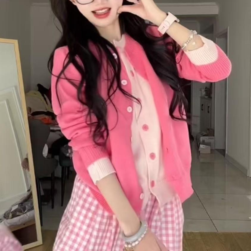 Knit Cardigan Women Round Neck Coat Top Sweater Spring Womenswear Knitwear