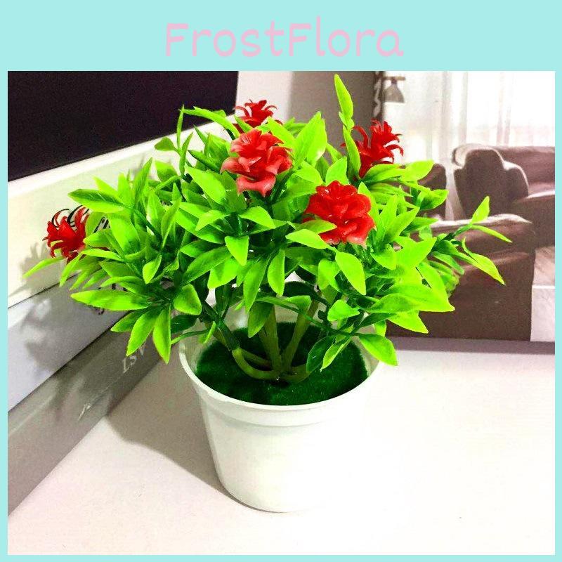 Rose Plastic Mini Artificial Flower Green Plant Potted Plant For Decor Indoor