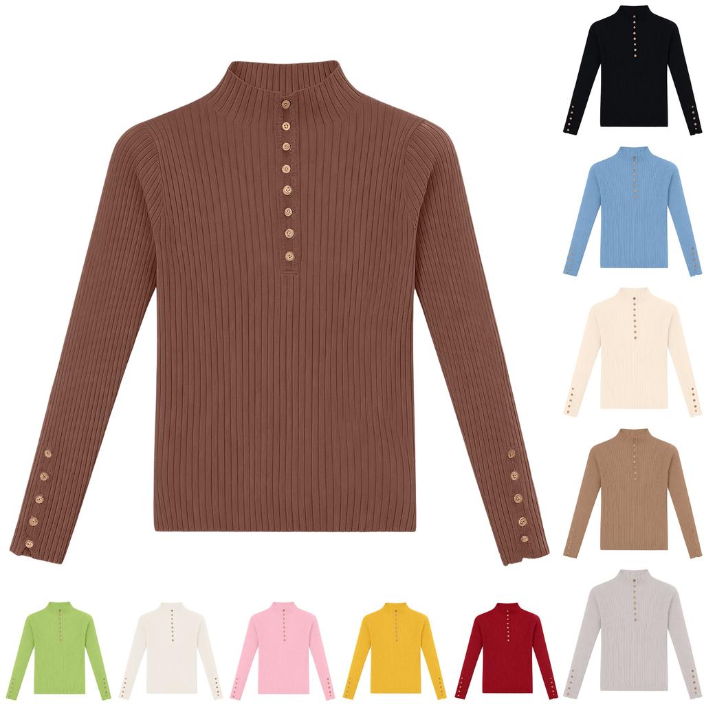 Women's Half-high Collar Base Layer Shirt Slim Button Sweater