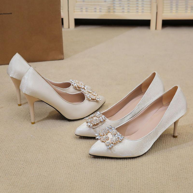 High Heels Pointed Thin Heels Fashion Shoes 2025 New Sexy Metal Buckle Light Mouth Champagne Professional Versatile Single Shoes