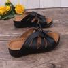 European and American Foreign Trade Hollow Bow Thick-soled Slippers Women's Sewing Line Open-toed Slope Heel Beach Cool Slippers Wish Source
