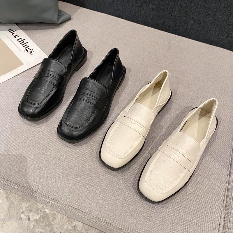 Single Shoes Women's Thick Heel 2025 New Spring and Summer Square Head Middle Heel British Style Small Leather Shoes Doudou Shoes One Pedal Loafers