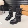 25-921 Retro Thick-heeled Medium Boots Knight Boots 2025 Spring and Autumn New Thin Piled Small Short Boots Niche Women's Shoes