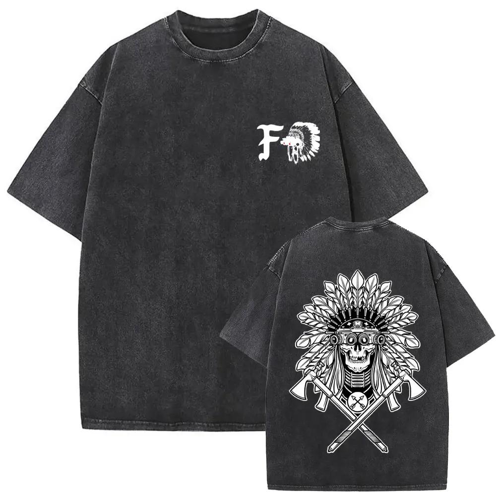 Fashion Vintage Washed Forward Observations Group Battle Tribe From The Grave Pull Over Print T-shirts Skeleton Bigsize