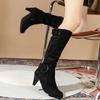 Knee-high Zipper Women's Modern Boots Women's Shoes High Quality New Pointed Toe Solid English Style Fashion Casual Plus Size 43