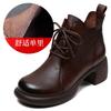 Cowhide Handmade Retro Medium Heel Short Women's Autumn New Lace-up Mother Leather Shoes Genuine Leather Martin Single