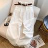 Apricot High-Waist Pleated Wide-Leg Jeans for Girls - Summer American Style