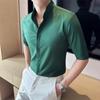 Men's Stylish Stand Collar Short Sleeve Shirt - Summer Cool, High-End, Seven-Point Sleeve