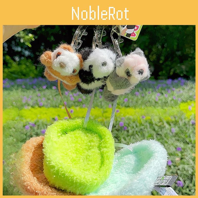 This plush panda keychain features embroidered details, crafted from soft polyester fabric for durability and comfort.it offers a lightweight and portable accessory for keys or bags. Ideal for children or gift recipients, it adds playful charm to everyday items. Wipe clean with a damp cloth to maintain its appearance.