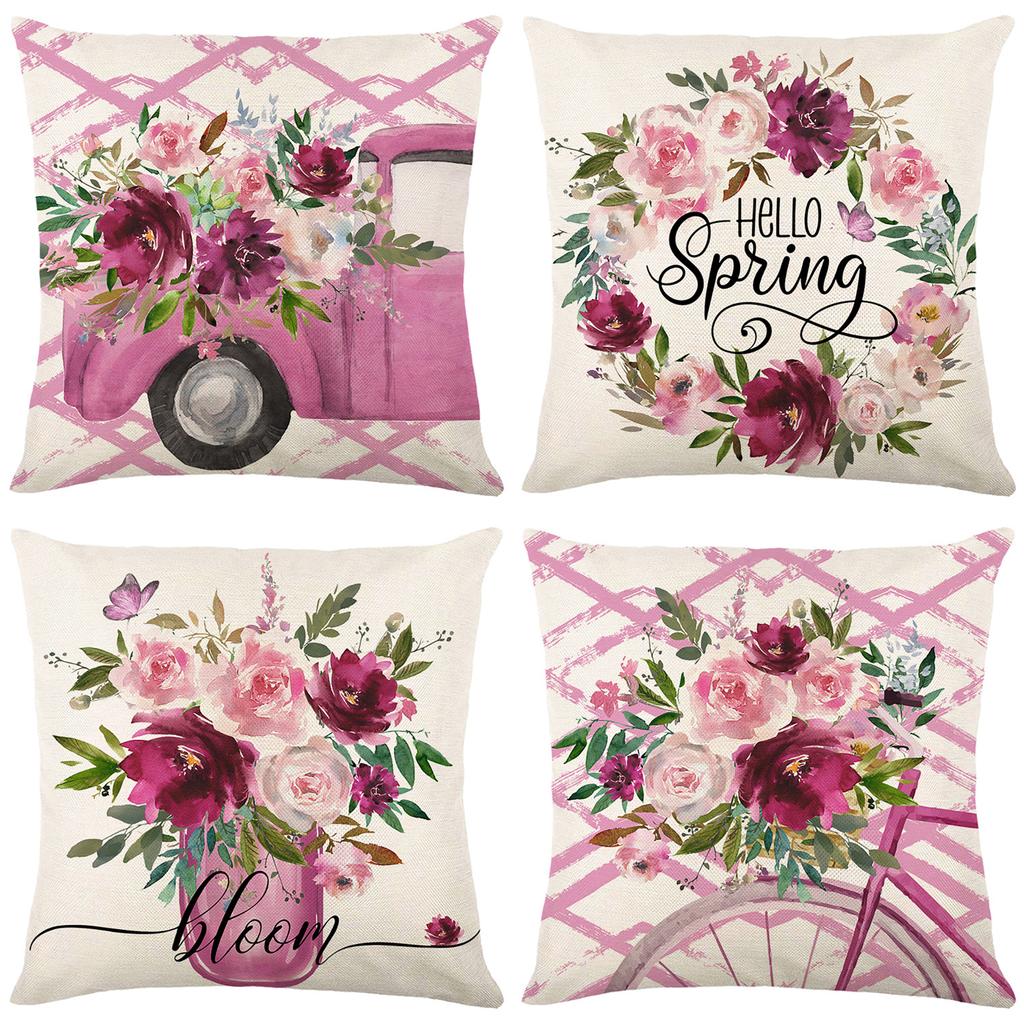 New Flower Pillow Cover Living Room Bedroom Bedside Pillow Cover Linen Printed Cushion Cover