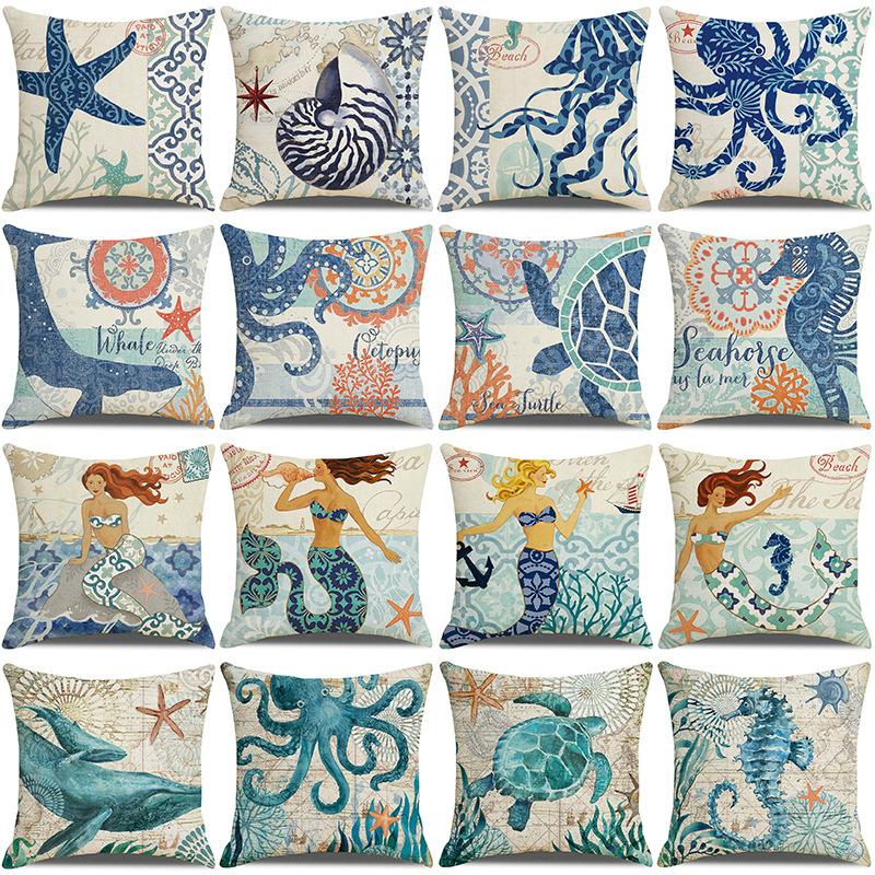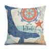 Retro Mediterranean Ocean Digital Print Linen Pillow Reading Cushion Home Furnishings
