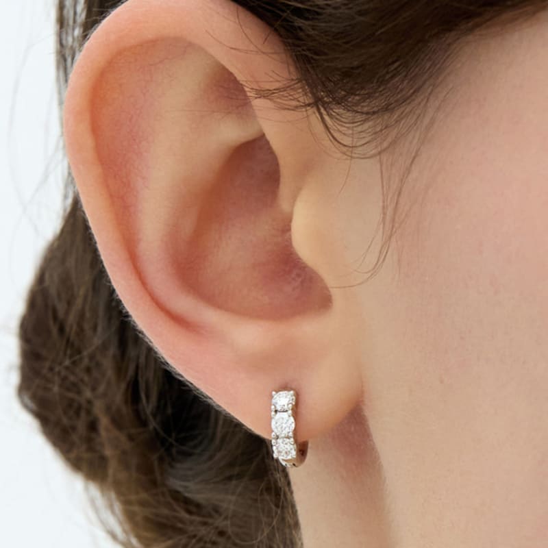 Hyeres-lor Essence Silver (W) Lab Diamond Tria One-Touch Earrings_0.1CT HL4E58429W9XXX