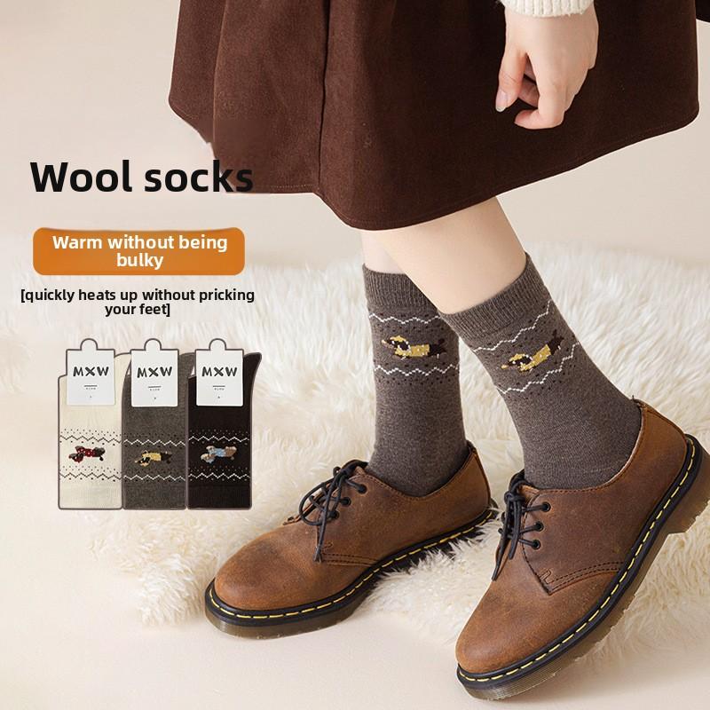 Socks, Women's Autumn and Winter Thickened Dachshund Mid-calf Socks, Cashmere Winter Pile Socks, Long Calf Socks, Warm Wool Socks