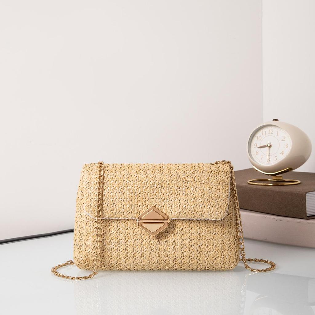 2024 Summer Trend Women's Straw Crossbody Handbag with Diamond Lock and Chain