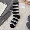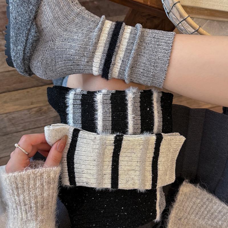 Grey Wool Socks, Autumn and Winter Socks, Women's Mid-calf Socks, Boneless Socks, Warm Thickened Striped Pile-up Long Socks