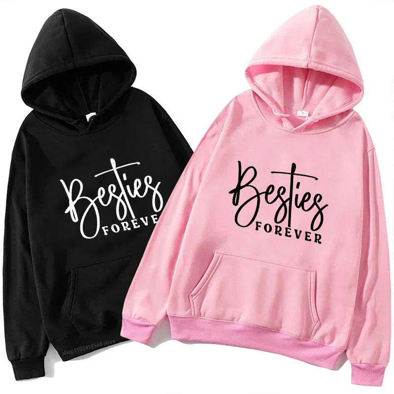Besties Mode Print Sweatshirt Women Fleece Hooded Casual Best Friends Hoodies Autumn Winter Besties Girls Trip Women Streetwear