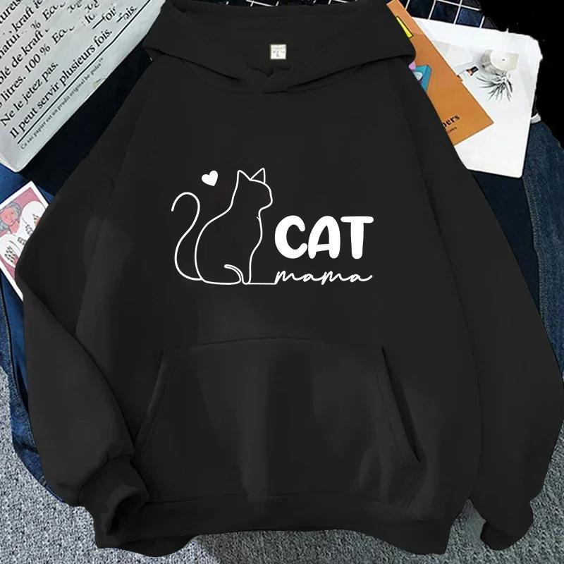 Cat Mama Print Hoodies Fashion Casual Long Sleeve Sweatshirts for Autumn Winter Clothing Mom Sportwear Fashion Women Clothes