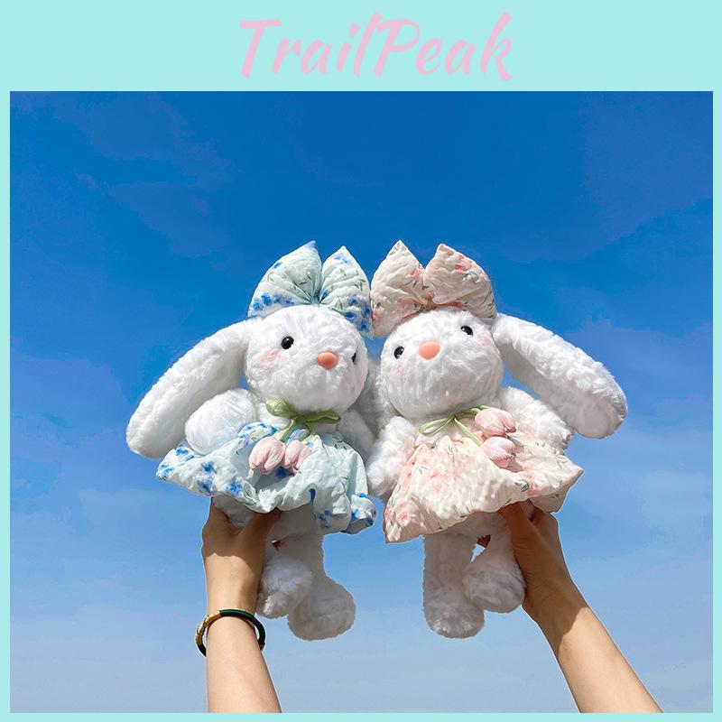 This plush rabbit doll features a delicate floral tulle dress, crafted from long pile plush and filled with soft PP cotton for a cuddly feel. Available in purple, pink, and blue, providing a comforting companion. Ideal for children, couples, or gift occasions, it supports gentle cleaning with a wipe-down after use.