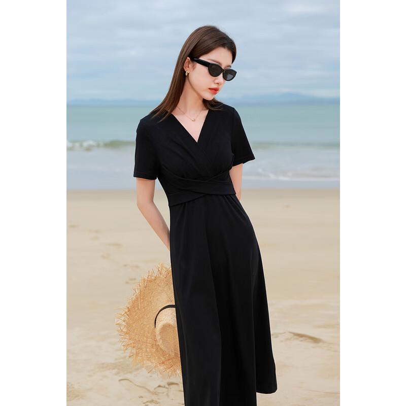 Sancai Plus Size V-Neck Short Sleeve Cross-Strap Little Black Dress