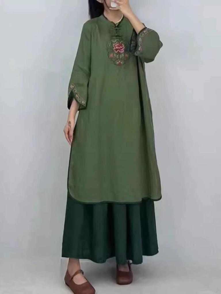 Experience elegance and comfort with this mid-length ethnic summer dress, crafted from high-quality cotton linen. The dress features intricate embroidery that beautifully highlights its traditional cheongsam style. Designed for warm weather, its breathable fabric ensures a cool and relaxed fit while maintaining a sophisticated and timeless look. Ideal for both casual outings and special occasions, this dress embodies a perfect blend of tradition and modernity.