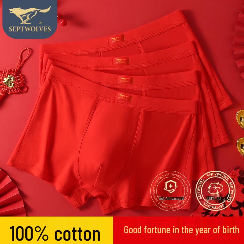 SEPTWOLVES Men's Pure Cotton Lucky Red Underwear