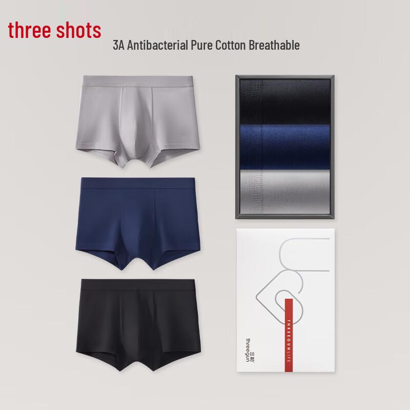 Threegun Men's Xinjiang Cotton Antibacterial Boxer Briefs (3-Pack)