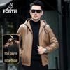 Men's Hooded Genuine Leather Zipper Jacket