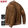 Hengyuanxiang Men's Suede Leather Baseball Collar Jacket