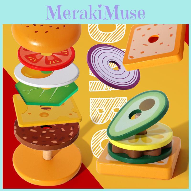Hamburger Simulation Wooden Sandwich Set Food Assembly Paired With Toys Children