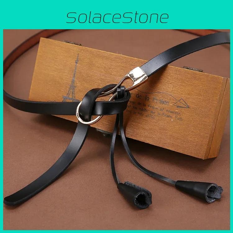 Up Knotting Thin Genuine Leather Belt Women Alloy Clasp Suitable Work Leisure