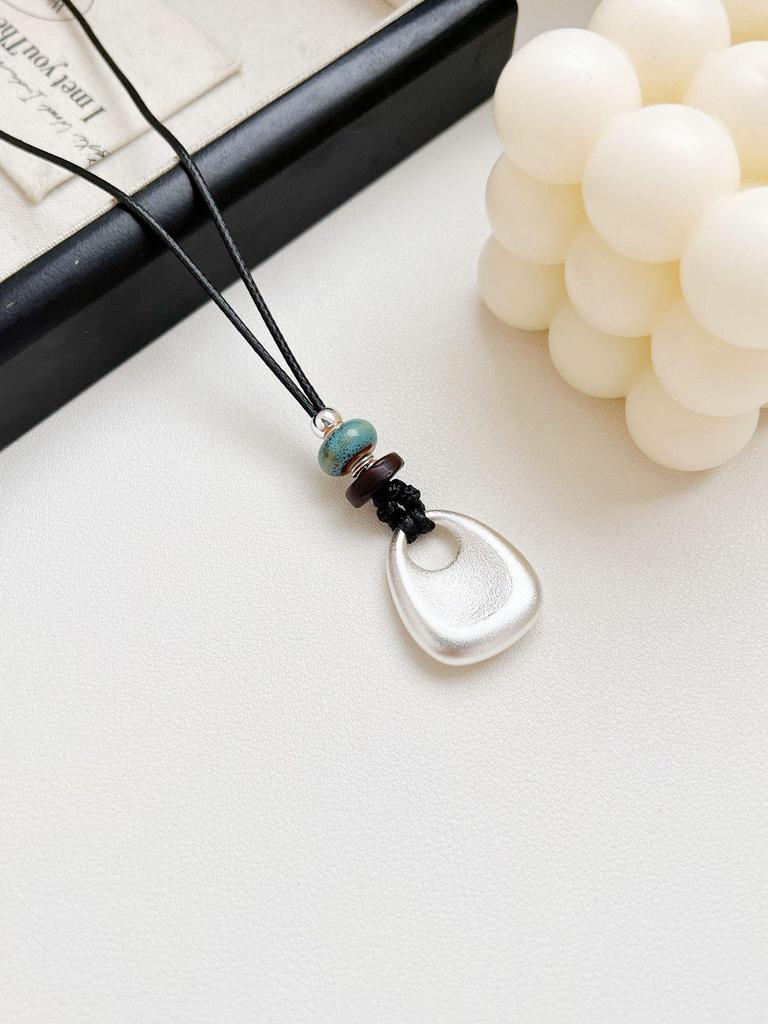 Elegant Black Leather Cord Pendant Necklace - Versatile Luxury Accessory