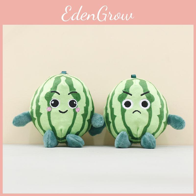 Plushie Watermelon Keyring With Embroid Smiling And Frowning Expressions Design