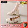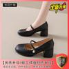 Mary Jane Women's Shoes 2025 New Mid-heel Fashion Versatile French Thick Heel High Heel Single Shoes Gentle with Skirt