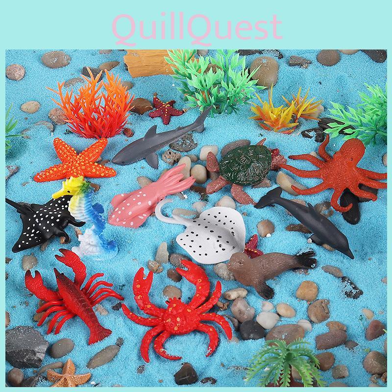 This set features detailed, static mini marine animal models made of durable plastic, including sea horses, dolphins, crabs, sharks, starfish, turtles, lobsters, and more. Each figure measures approximately 2-3 inches, suitable for display or educational purposes. Ideal for marine-themed decor, classroom activities, or dioramas. Wipe clean with a damp cloth for maintenance.