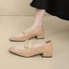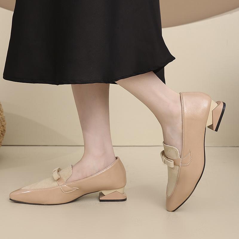 British Style Small Leather Shoes Women's Autumn New French Splicing Thick Heel Pointed Foreign Style Single Shoes Medium Heel Elegant Loafers