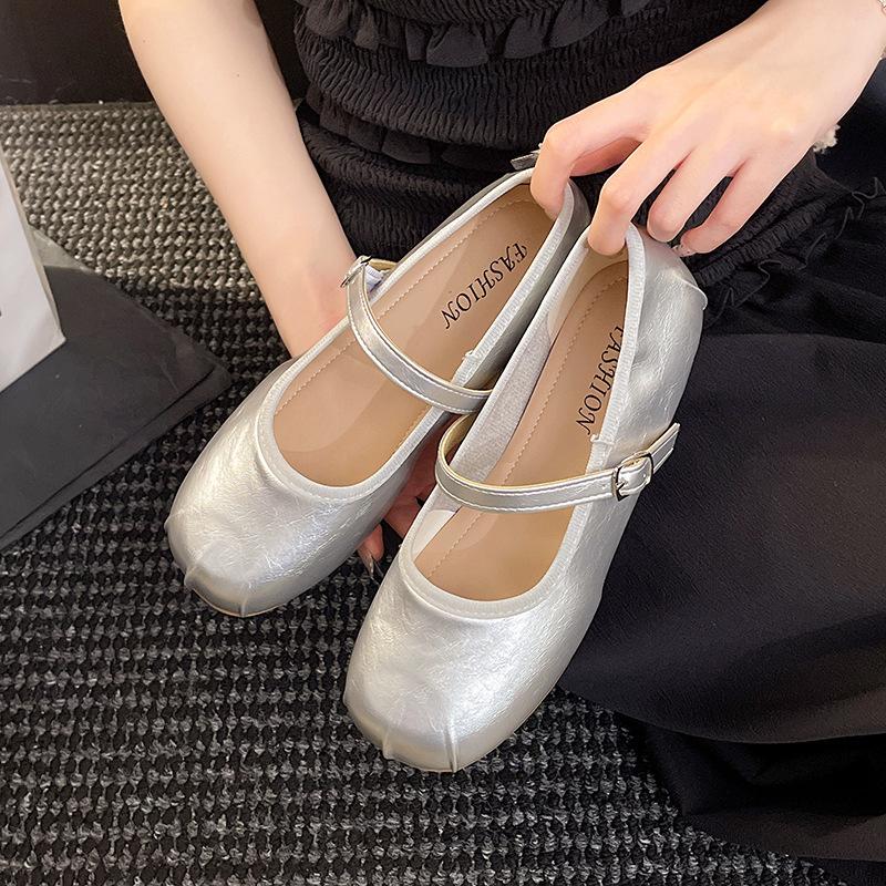 Temperament Fashionable Small Leather Shoes Simple One-word Buckle Mary Jane Shoes Retro Square Head Soft Leather Soft Sole Flat Sole Single Shoes