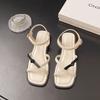 Roman Sandals Women's 2025 New Summer French High-end Skirt One-word Belt Low-heeled Flat Beach Shoes