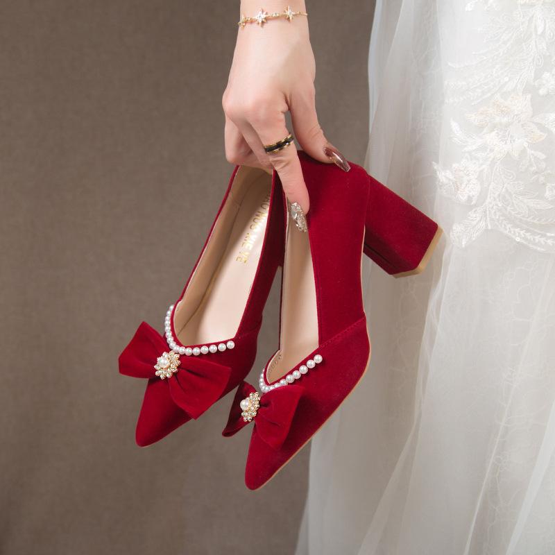 Wedding Shoes Bridal Shoes 2025 New Red High Heels Thick Heel Xiuhe Wedding Dress Two Wear Wedding Shoes Are Not Tired