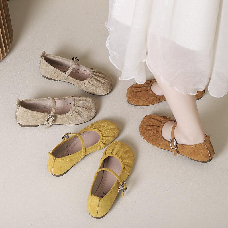 One Pedal 2025 Spring Gentle Shallow Mouth Soft Sole Flat Bottom Pleated Round Head French Single Shoes Female Grandma Shoes Laden Shoes