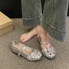 4Cm Beautiful French Rhinestone Mary Jane Female 2025 Summer New Model with Skirt Flat-bottomed Temperament Single Shoes Shoe Flower