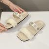 Popular Mao Mao Rhinestone Cool Slippers Women's 2025 Summer New Outer Wear Skirt Casual Versatile Flat Bottom Cool Slippers