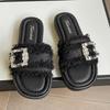 Xiaoxiangfeng Rhinestone Slippers Women's Summer Wear New Internet Celebrity Explosion Flat Bottom One-word Drag Non-slip Beach Sandals
