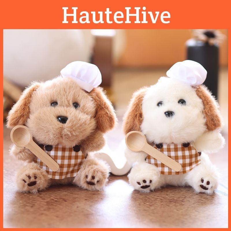 Cute Cartoon Puppy With Chef Hat Spoon Plaid Apron Plush Toy Keychain Pendant