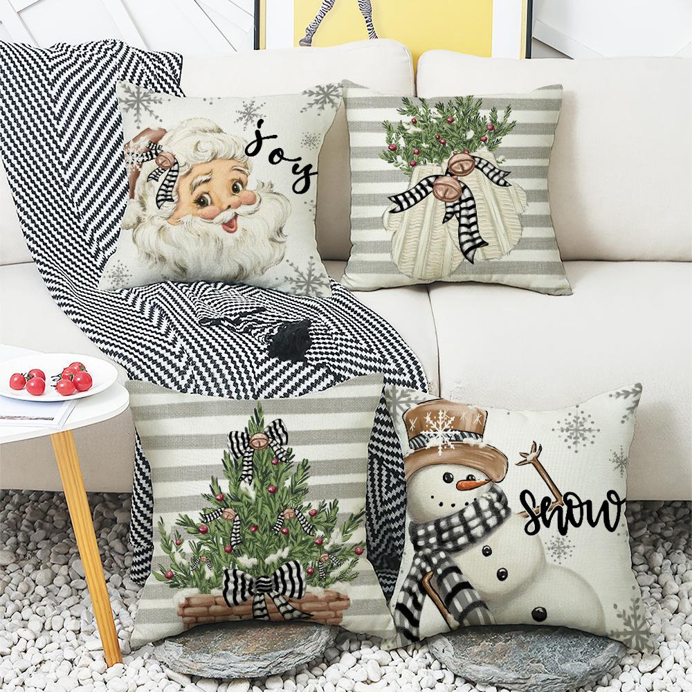 Christmas Pillow Cover Simple Snowman Linen Letter Print Sofa Cushion Home Pillow Cover