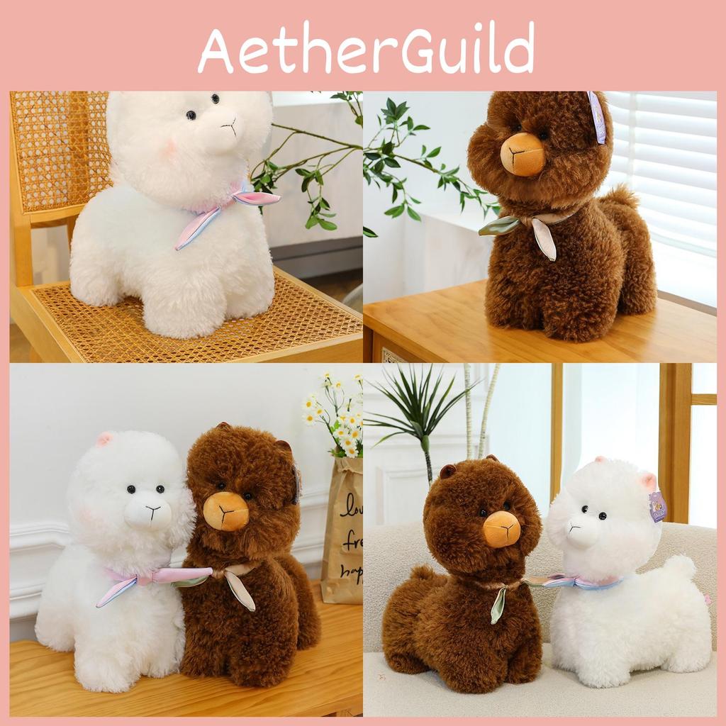 This plush alpaca doll features a realistic animal design with soft short-pile fleece, made of durable PP cotton filling. Available in white and deep brown, Ideal for children's room decor or as a cute gift. Wipe clean with a damp cloth for maintenance.